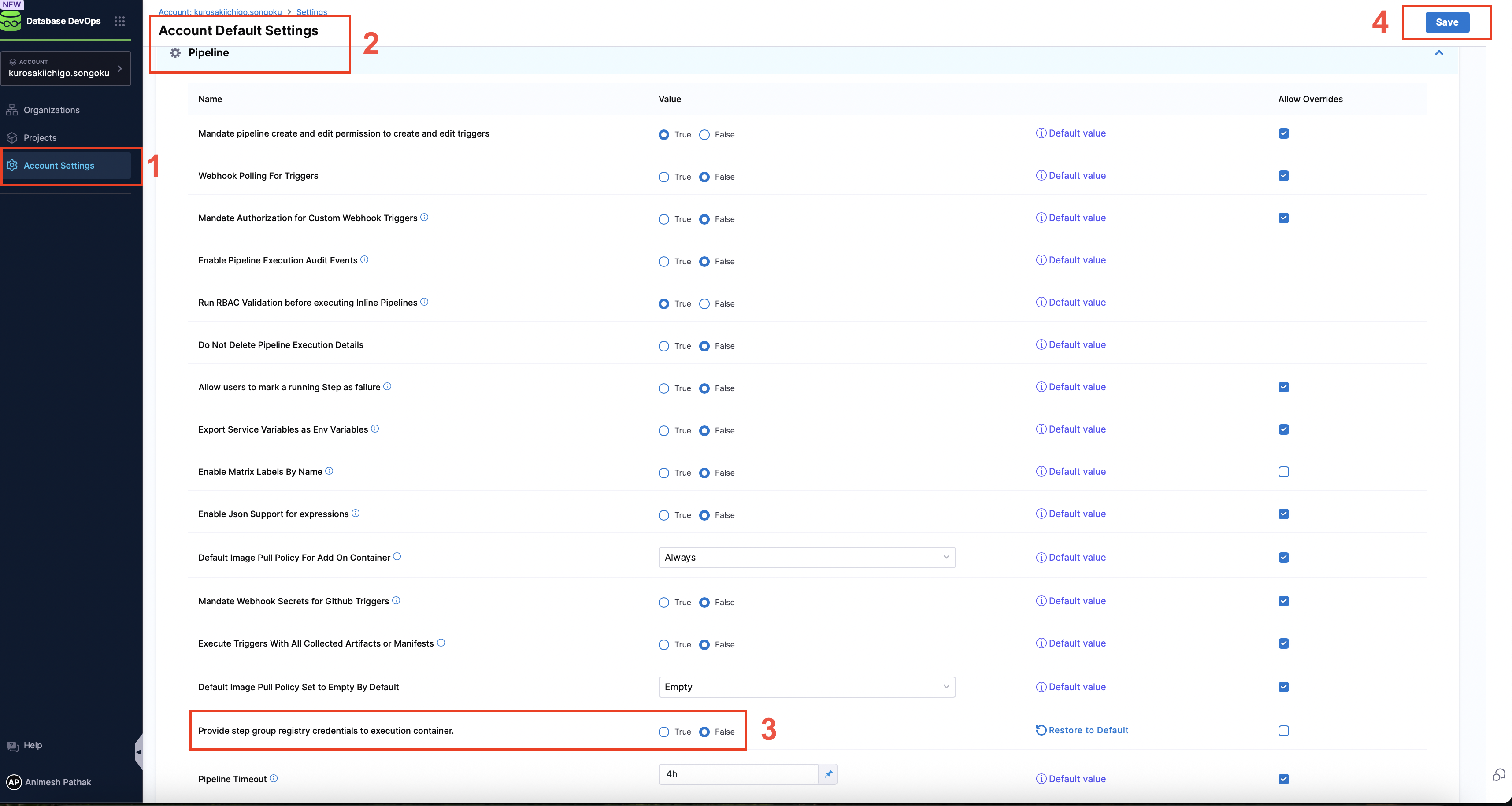 Falsefor Provide step group registry credentials to execution container. (Default value isTrue)