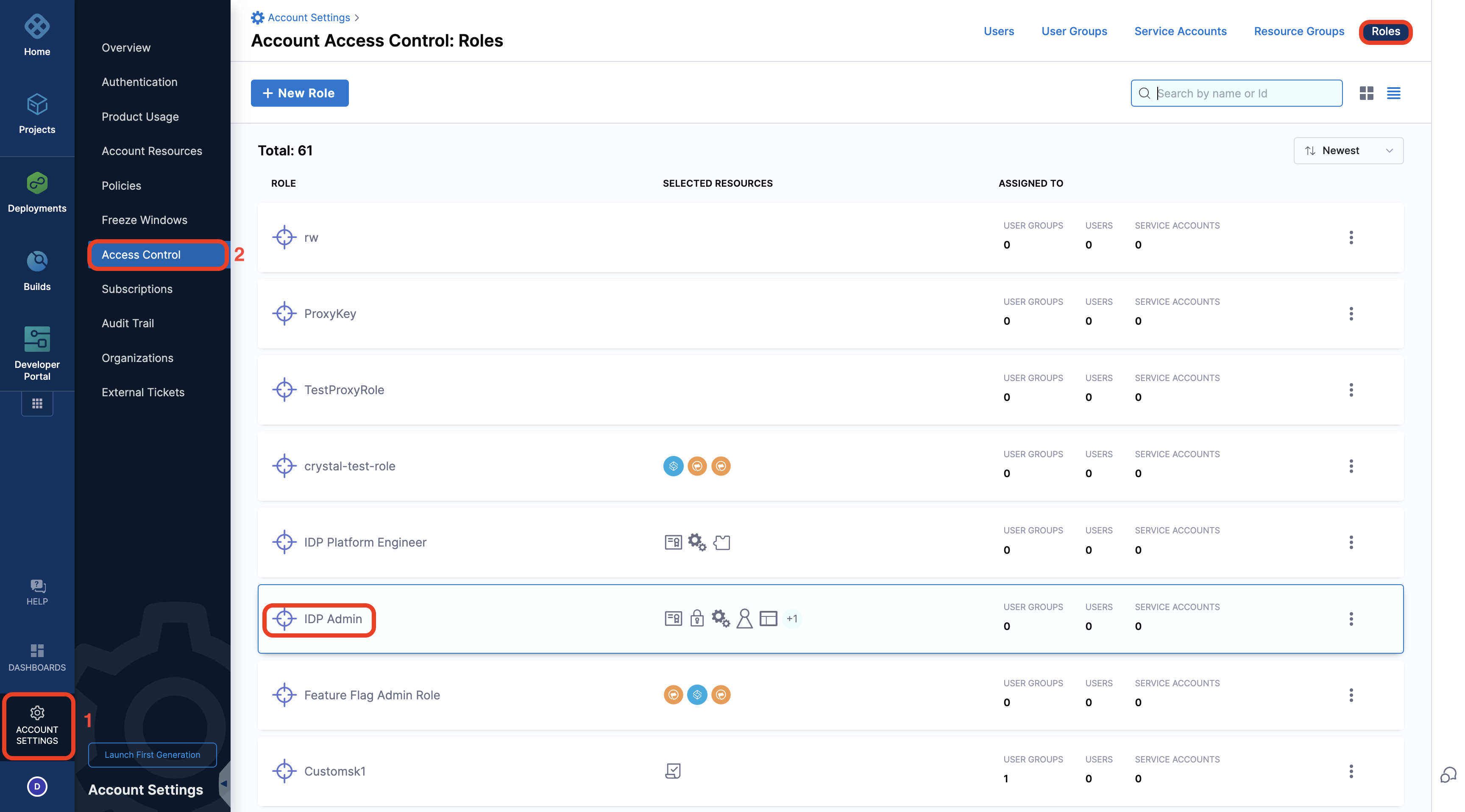 • Only users with the Harness Account Admin role or assigned IDP Admin role (with permissions shown below) can configure IDP. Here's the detailed documentation on how to assign roles